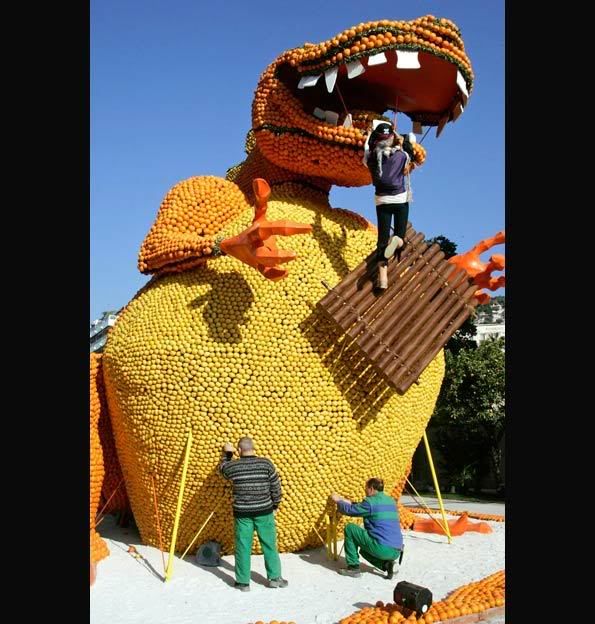 Franceses fazem dragão gigante com laranjas e limões